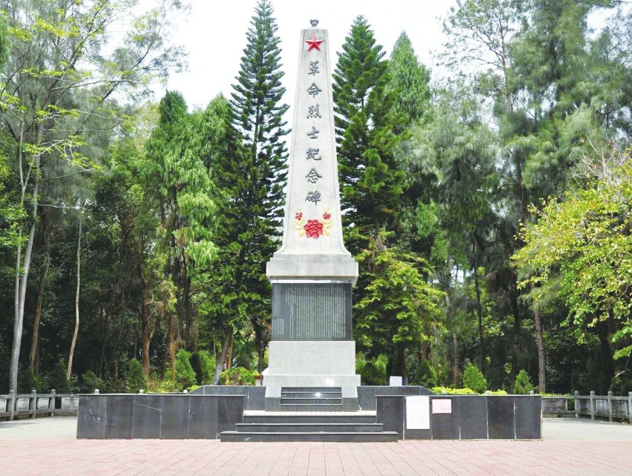 李卡烈士紀(jì)念碑坐落于他進(jìn)行武裝斗爭(zhēng)的主要活動(dòng)地——廣東韶關(guān)翁源。紀(jì)念碑高約10米,共分3層。碑身使用磚體結(jié)構(gòu)水泥筑就,正面銘刻著“革命烈士紀(jì)念碑”7個(gè)黑體大字,字體上方有紅星照耀,下方有鮮花環(huán)繞。碑身以下又分兩層,底下一層為碑座,同是磚體結(jié)構(gòu)水泥材質(zhì),中間一層則是銘刻著碑文的黑體瓷磚。紀(jì)念碑莊重大氣,望之肅然起敬。與一般紀(jì)念碑不同的是,碑的正面與背面都刻有碑文,正面碑文講述了翁源革命的歷史概況,尤為獨(dú)特的是背面碑文,主要文字竟然是一篇遺書(shū)。背面碑文全文如下:
