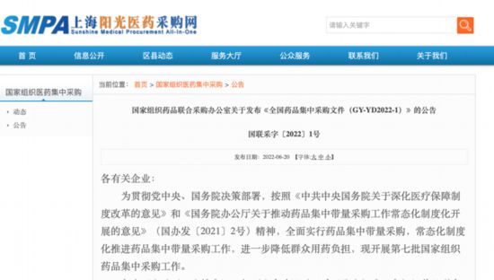 日前,國家組織藥品聯(lián)合采購辦公室發(fā)布《全國藥品集中采購文件(GY-YD2022-1)》公告,正式啟動第七批國家藥品集采工作,并擬定于7月12日開標(biāo)。