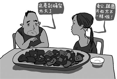 紅彤彤的烤饅頭夾龍蝦、焦褐色的炸肥腸、金燦燦的菠蘿飯……看到這些美食圖片,來自天津市河?xùn)|區(qū)的鄒楷不但沒有“打卡”的欲望,反而有點(diǎn)反胃,因?yàn)楦唢柡投鹊纳首屖澄锟瓷先ヌ倭?。和鄒楷一樣,對美食宣傳過度現(xiàn)象不理解的人不在少數(shù)。近日在多個(gè)美食推薦平臺上,有不少消費(fèi)者吐槽,其被宣傳圖片或者文案吸引,結(jié)果吃到的食物與圖文嚴(yán)重不符。(9月20日《法治日報(bào)》)