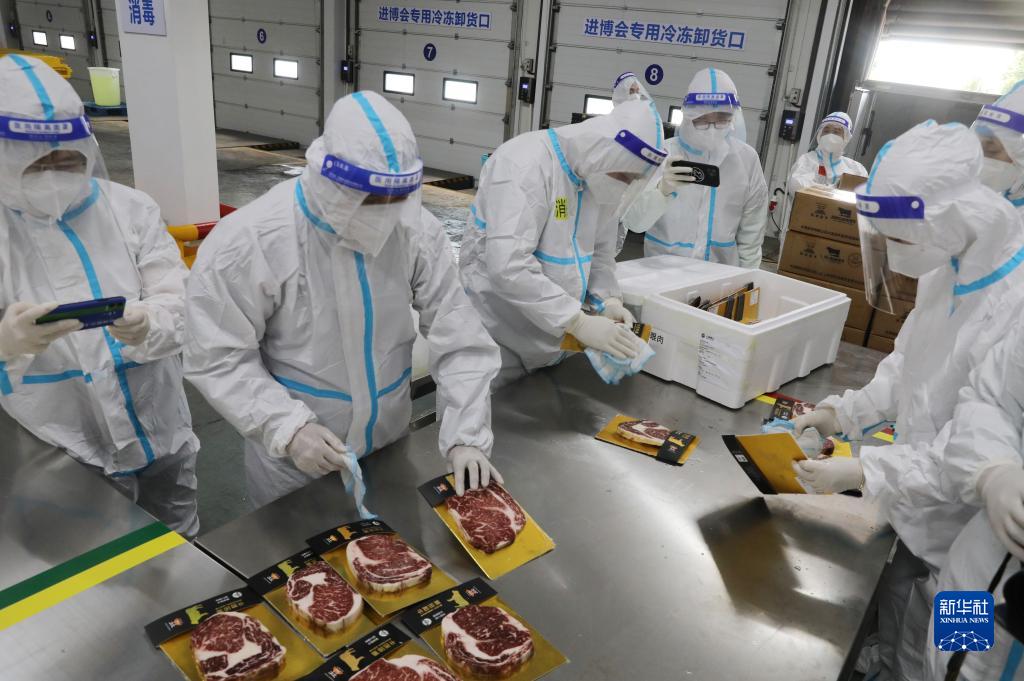 10月20日上午9點(diǎn),第五屆中國國際進(jìn)口博覽會的第一批進(jìn)口冷鏈?zhǔn)称氛蛊繁贿\(yùn)入總倉。在接下來的10天內(nèi),預(yù)計約100個全球參展商、3000箱冷鏈?zhǔn)称氛蛊?,將在總倉集中完成“最小包裝”消毒和核酸檢測。