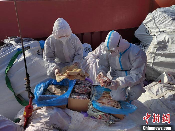 海警執(zhí)法員對涉案凍品進行點驗。 福州海警局供圖