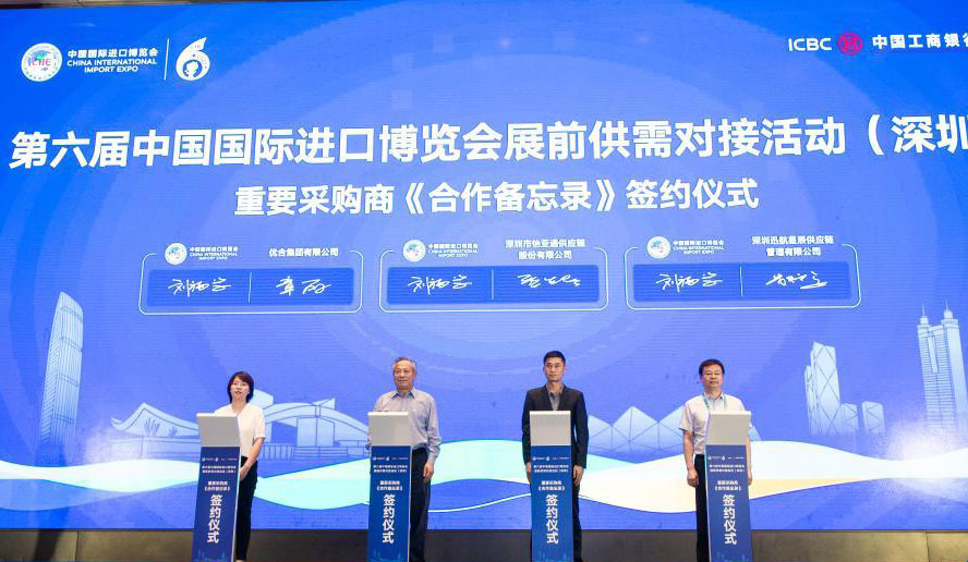 當(dāng)日,為給粵港澳大灣區(qū)企業(yè)與進(jìn)博會(huì)參展企業(yè)搭建對接交流的平臺(tái),第六屆中國國際進(jìn)口博覽會(huì)展前供需對接活動(dòng)在深圳舉行。進(jìn)博會(huì)技術(shù)裝備、食品及農(nóng)產(chǎn)品、服務(wù)貿(mào)易展區(qū)近60家參展商到場展示,吸引粵港澳大灣區(qū)200余家企業(yè)到會(huì)進(jìn)行現(xiàn)場對接。(毛思倩)