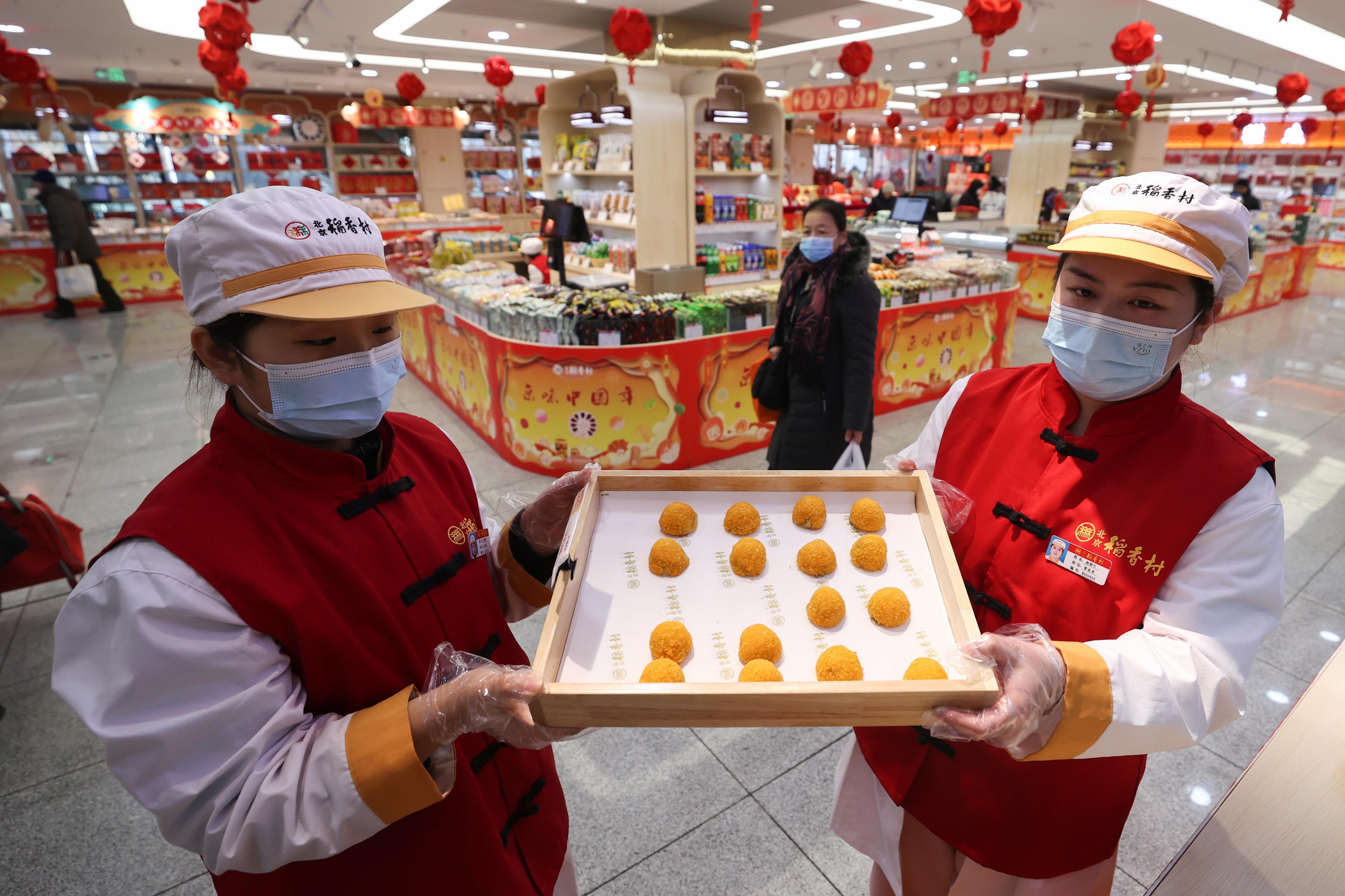 湯圓又有新吃法。近日,北京一家中華老字號(hào)糕點(diǎn)店門(mén)口,消費(fèi)者在其元宵湯圓柜臺(tái)前排起了長(zhǎng)隊(duì)。記者了解到,該店在原有口味的基礎(chǔ)上,又特別推出了現(xiàn)烤黃米湯圓,其獨(dú)特的風(fēng)味吸引眾多顧客前來(lái)嘗鮮。(董芳忠)