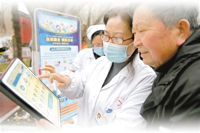 2020年12月2日,安徽理工大學(xué)第一附屬醫(yī)院醫(yī)護人員走進淮南市田家庵區(qū)洞山社區(qū),指導(dǎo)老年患者使用皖事通平臺淮南分站上線的該院互聯(lián)網(wǎng)醫(yī)院應(yīng)用服務(wù),方便老年患者使用手機就醫(yī)問診。 陳 彬攝(影像中國) |