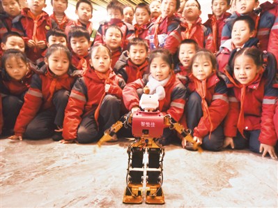 2020年12月18日,江西省撫州市資溪縣第三小學(xué)學(xué)生在觀看機(jī)器人表演?! 侵举F攝(人民視覺(jué)) |