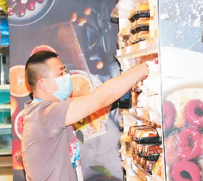 連鎖經(jīng)營(yíng)管理師馮亞光在整理商品陳列?! 『旭R鮮生供圖 |