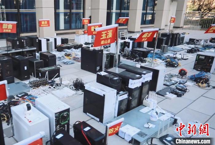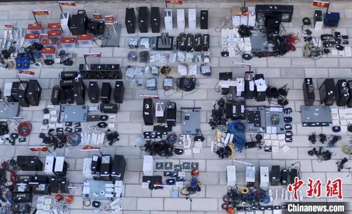 圖為警方繳獲的智能插座等智能遠(yuǎn)程監(jiān)控設(shè)備。云南省公安廳供圖