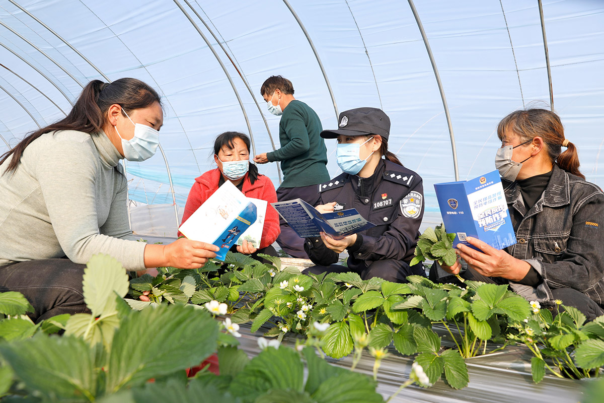 圖為黨員民警向村民宣傳反詐知識(shí),同時(shí)聽(tīng)取他們對(duì)公安工作的意見(jiàn)建議。