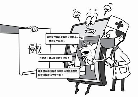 被同學(xué)告知該情況的小晴立刻聯(lián)系到該網(wǎng)絡(luò)平臺用戶。對方謊稱自己是通過微信公眾號“××看臉”介紹到相關(guān)醫(yī)美機(jī)構(gòu)做的。小晴又查找到了“××看臉”微信公眾號,并與客服人員取得了聯(lián)系,對方稱照片中的女子是自己的客戶,眼睛鼻子都是在某醫(yī)美機(jī)構(gòu)做的。