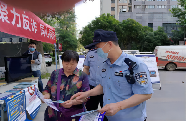 為有效遏制電信網(wǎng)絡(luò)詐騙違法犯罪,近日,陜西省西安市公安局蓮湖分局土門派出所社區(qū)民警走進商戶、企業(yè)開展反詐宣傳活動。(王拓)