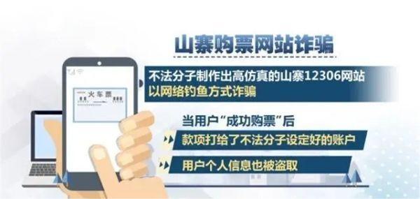 山寨購(gòu)票網(wǎng)站詐騙:不法分子制作出高仿真的山寨12306網(wǎng)站,以網(wǎng)絡(luò)釣魚方式詐騙,這些網(wǎng)站在頁面布局、域名上與12306網(wǎng)站非常相似。當(dāng)用戶“成功購(gòu)票”后,款項(xiàng)打給了不法分子設(shè)定好的賬戶,用戶個(gè)人信息也被盜取。