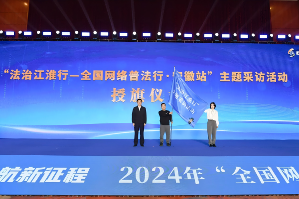 圖為2024年全國網(wǎng)絡(luò)普法行安徽站授旗現(xiàn)場。