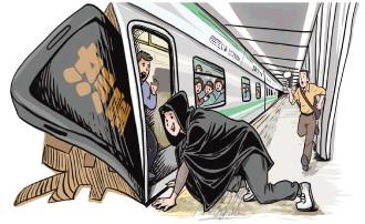男子穿黑絲披斗篷爬進地鐵 公交車上捏爆袋裝牛奶噴灑一地