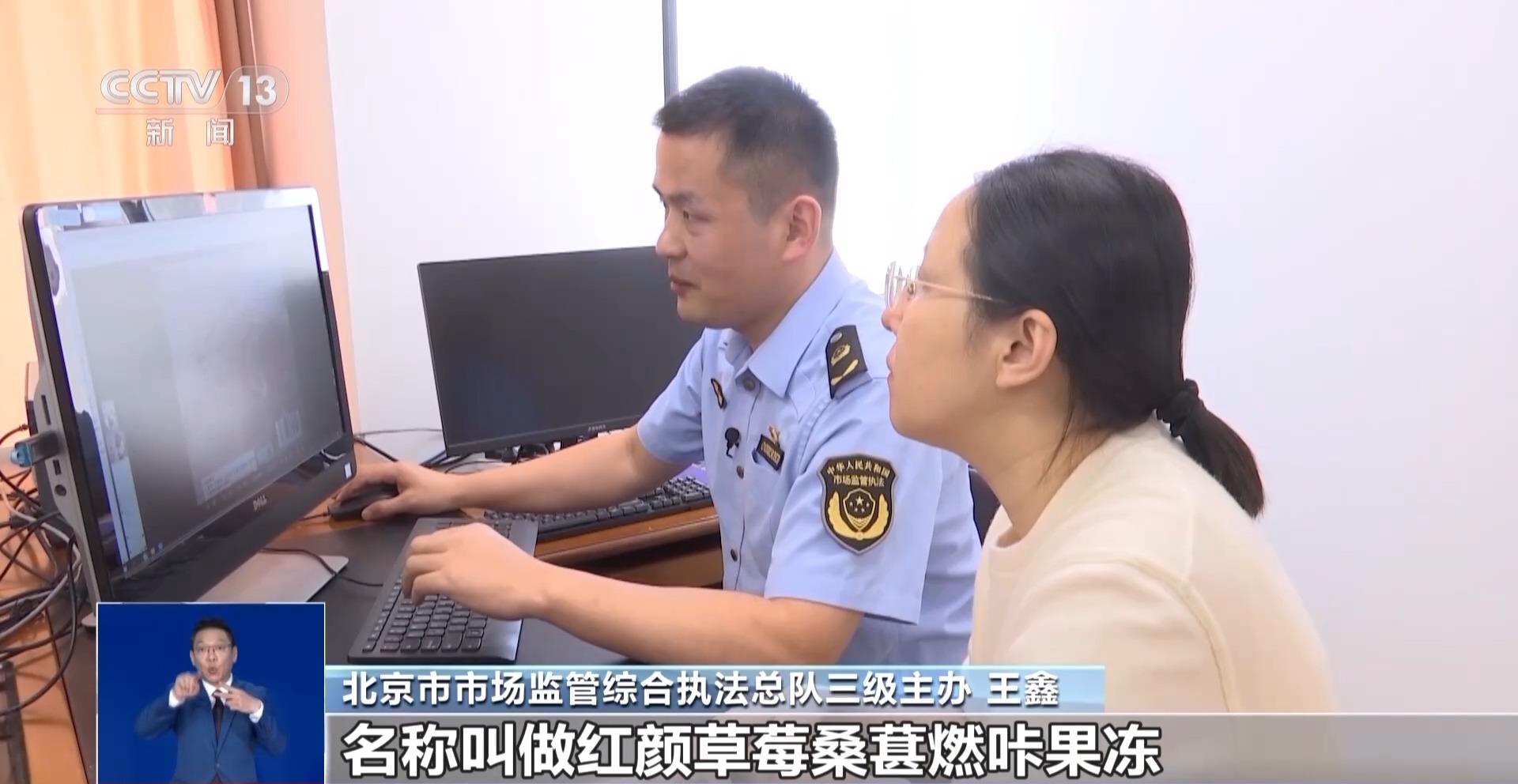 北京市市場監(jiān)管綜合執(zhí)法總隊三級主辦 王鑫:我們可以看到這款產(chǎn)品的名稱叫作紅顏草莓桑葚燃咔果凍,它有食品生產(chǎn)許可證的編號,沒有保健食品的藍帽子標(biāo)志,也沒有藥品的生產(chǎn)許可證,它只是一款普通的食品。