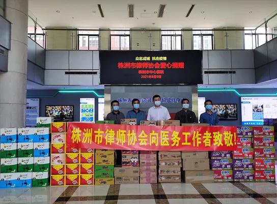 株洲市律師協(xié)會(huì)撥付1萬元購買八寶粥、方便面、牛奶等緊缺生活物資捐贈(zèng)給株洲市中心醫(yī)院。
