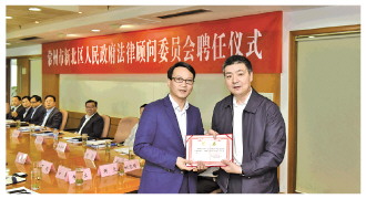 邢輝(左)受聘擔(dān)任新北區(qū)政府法律顧問(wèn)。