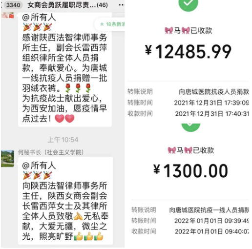 2021年12月23日,陜西法正平安律師事務(wù)所第一時間發(fā)布倡議書,號召全體黨員律師充分發(fā)揮先鋒模范作用,成立公益法律服務(wù)團,通過律所網(wǎng)站公布公益法律服務(wù)團律師手機號碼,以及參加西安市婦聯(lián)線上公益法律服務(wù)等措施,義務(wù)為群眾解答電話、線上法律咨詢。