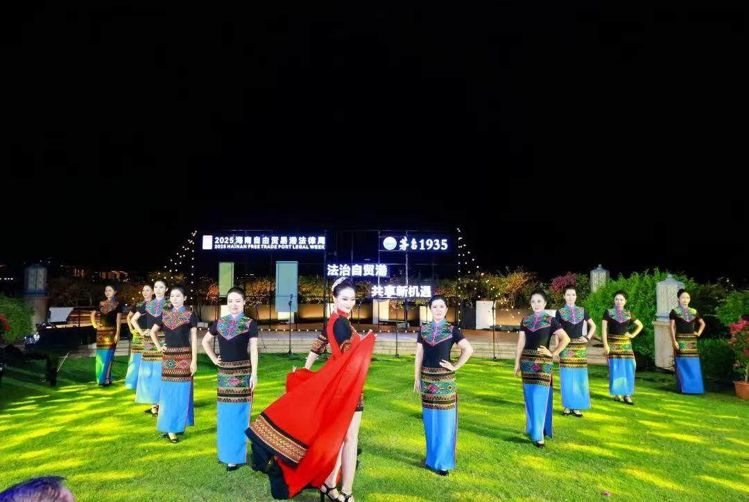 活動中還特別設(shè)置了海南省非遺展示環(huán)節(jié)。青年舞蹈家張櫻藍老師攜手海南省律師協(xié)會舞蹈隊的女律師們,為本屆法律周精心打造了原創(chuàng)節(jié)目——《黎錦旗袍秀》,將世界級非物質(zhì)文化遺產(chǎn)“黎錦”與風(fēng)靡世界的中國旗袍完美融合,女律師們以優(yōu)雅的步伐,展示著穿越千年的黎錦之美。