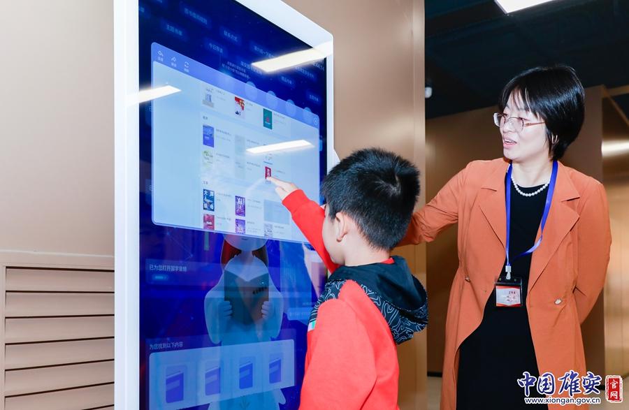 讀者在體驗圖書館內(nèi)的智能設備。中國雄安官網(wǎng)發(fā)