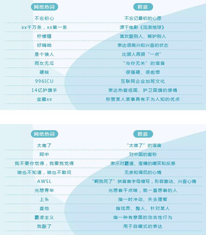 法制網(wǎng)監(jiān)測中心(ID:fzwyqzx)綜合國家語言資源監(jiān)測與研究中心、《咬文嚼字》雜志、《語言文字周報》等權威發(fā)布,選取了2019年較有代表性的20個網(wǎng)絡熱詞。通過對這些網(wǎng)絡熱詞所反映的新特征進行分析,總結我國網(wǎng)民輿論心態(tài)和網(wǎng)絡情感變化的四點新趨勢。