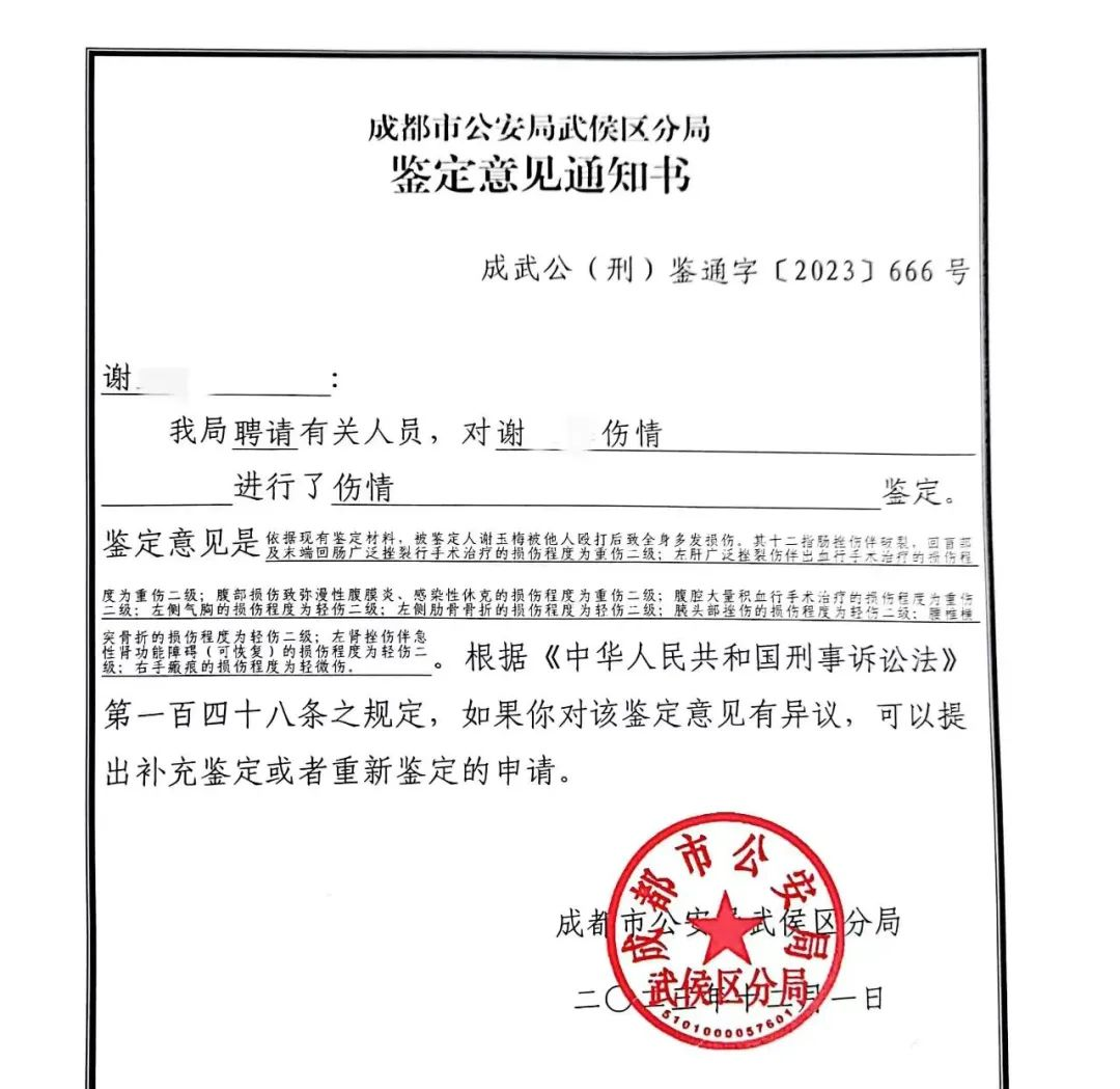5月26日,《南方都市報》報道稱,此前媒體報道的“成都女子謝某2年被家暴16次”案件迎來重要進(jìn)展,謝某訴丈夫賀某離婚糾紛案將于5月31日在四川省成都市武侯區(qū)人民法院開庭審理。據(jù)悉,自2021年以來,謝某在與賀某結(jié)婚后的兩年內(nèi)被家暴了16次。期間,她多次向婦聯(lián)、社區(qū)等部門尋求幫助,警方曾兩次出具家庭暴力告誡書,但賀某拒不改正。2023年4月24日,謝某向武侯區(qū)法院提交了人身保護(hù)令和離婚申請,因手續(xù)不全未被法院受理。當(dāng)晚,賀某再次對謝某施暴致其重傷,導(dǎo)致謝某需終身佩戴糞袋。案發(fā)后,賀某被當(dāng)?shù)毓矙C(jī)關(guān)刑事拘留。2023年12月,武侯區(qū)檢察院以賀某涉嫌故意傷害罪、虐待罪向武侯區(qū)法院提起公訴,謝某則希望以故意殺人罪立案判處其死刑。