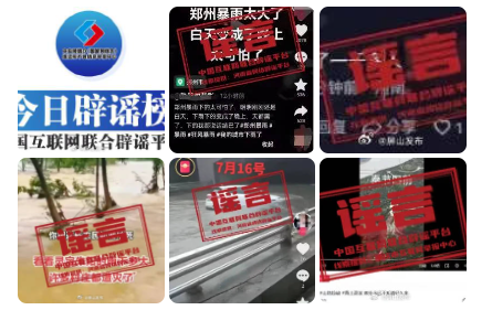 一是編造汛情災情。造謠者通過視頻嫁接、圖片拼湊等手段,捏造暴雨、內(nèi)澇、滑坡、泥石流等災情信息,并將位置定位在災害發(fā)生地,具有迷惑性,容易讓人信以為真。如短視頻賬號“熟悉的背影”故意將網(wǎng)上下載的其他城市的暴雨視頻張冠李戴為鄭州,以目擊者口吻編造“鄭州暴雨下得太可怕,白天變成了晚上”等不實信息,誤導眾多網(wǎng)民留言表達擔憂;網(wǎng)傳“重慶奉節(jié)口前山體滑坡”,實為湖北秭歸一山體發(fā)生滑坡瞬間;而短視頻中熱傳的“百年難遇!濟南遭遇特大暴雨”視頻,經(jīng)濟南互聯(lián)網(wǎng)聯(lián)合辟謠平臺證實系謠言,視頻中的地鐵、街道等場景不在濟南。