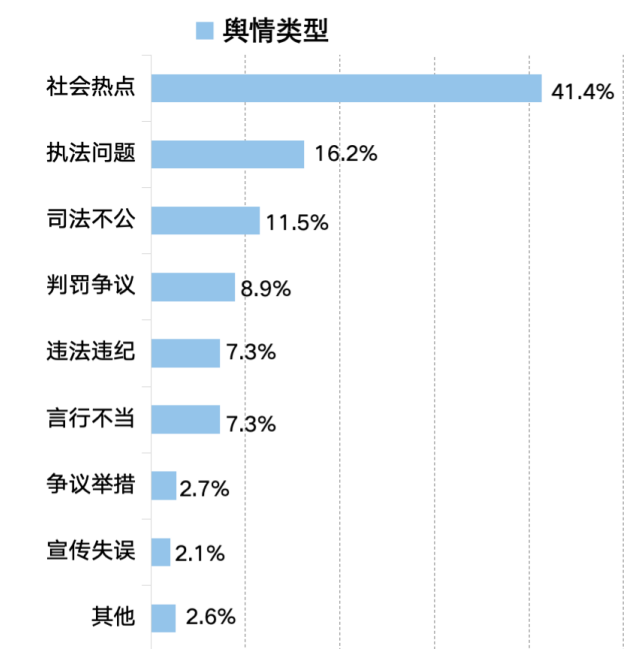 三、輿情類型:社會熱點輿情多發(fā) 執(zhí)法問題類輿情相對突出
