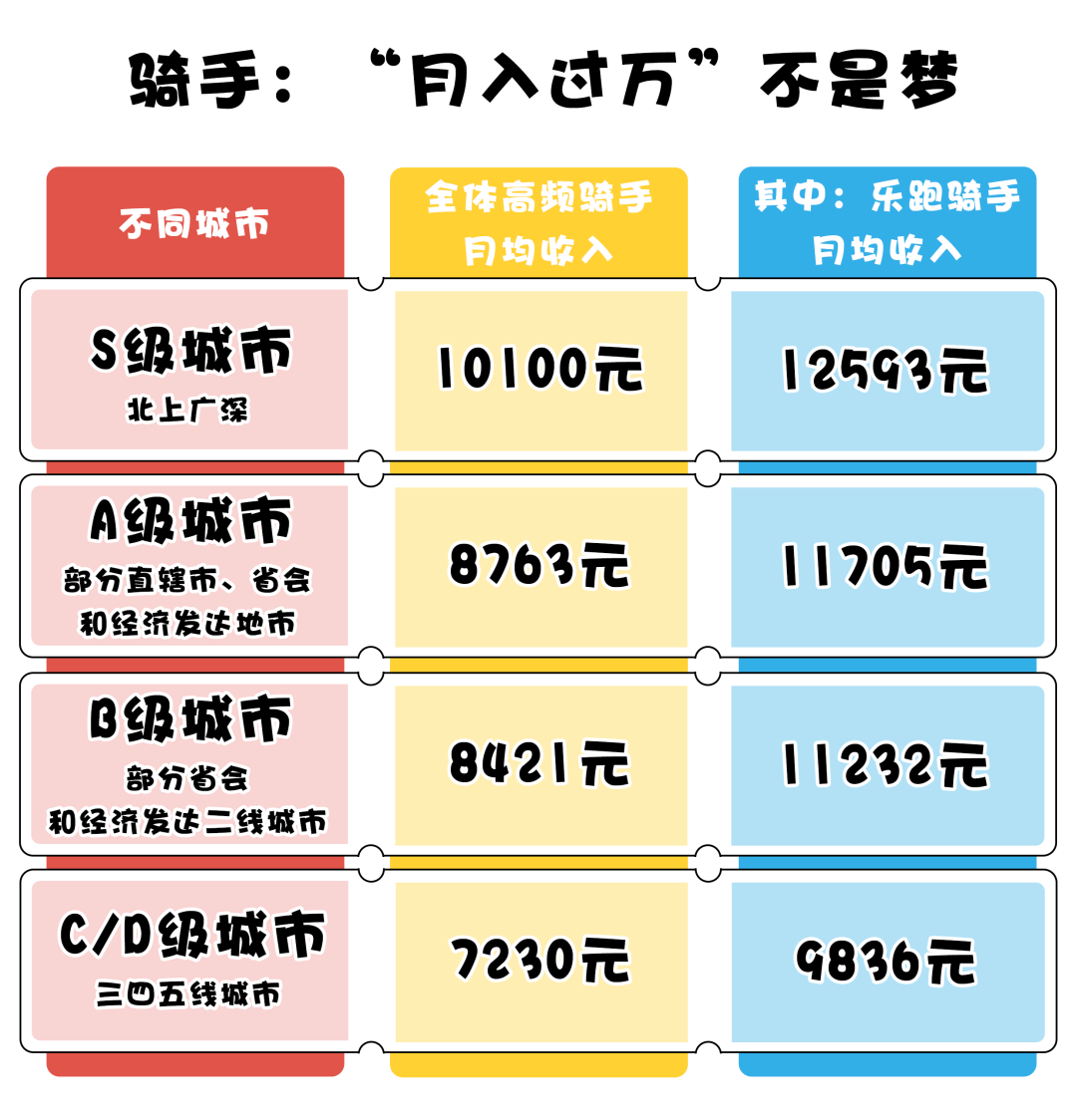 某外賣平臺2025年第一季度財報數(shù)據(jù)顯示,全國高頻騎手月均收入?yún)^(qū)間為7230元至10100元。在北上廣深等城市,技能更熟練的樂跑騎手收入優(yōu)勢更為明顯,月均可達12593元。