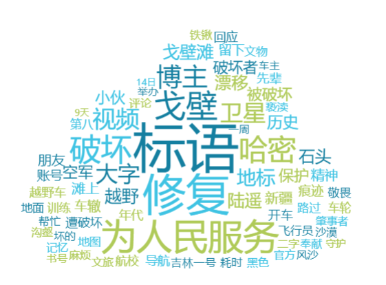 2025年9月12日,B站UP主“略靠譜旅社”發(fā)布一則視頻,講述哈密戈壁灘內(nèi)“為人民服務(wù)”標(biāo)語的歷史和現(xiàn)狀。視頻發(fā)布后,網(wǎng)民除了積極表達(dá)愛國(guó)熱情外,還關(guān)注到了標(biāo)語周邊幾個(gè)惹眼的巨大“圓圈”,追問是如何造成的。有網(wǎng)民表示是越野車愛好者造成的破壞。10月10日,該名UP主再度發(fā)布一則視頻,講述其修復(fù)被破壞標(biāo)語的全過程,并對(duì)相關(guān)越野人士表達(dá)譴責(zé)。該博主贏得了網(wǎng)民的認(rèn)可和支持,一些人開始深扒破壞者身份。10月11日,“@蟹武大D”等網(wǎng)民貼出疑似破壞者的抖音賬號(hào)“新疆平頭哥(旅游無人區(qū)私人定制)”。不少網(wǎng)民因此譴責(zé)該名博主,要求當(dāng)?shù)赜嘘P(guān)部門查處。當(dāng)晚,該抖音賬號(hào)發(fā)聲否認(rèn)此事,并稱將去修復(fù)標(biāo)語。不少網(wǎng)民堅(jiān)持認(rèn)為標(biāo)語是遭其破壞,呼吁警方介入。