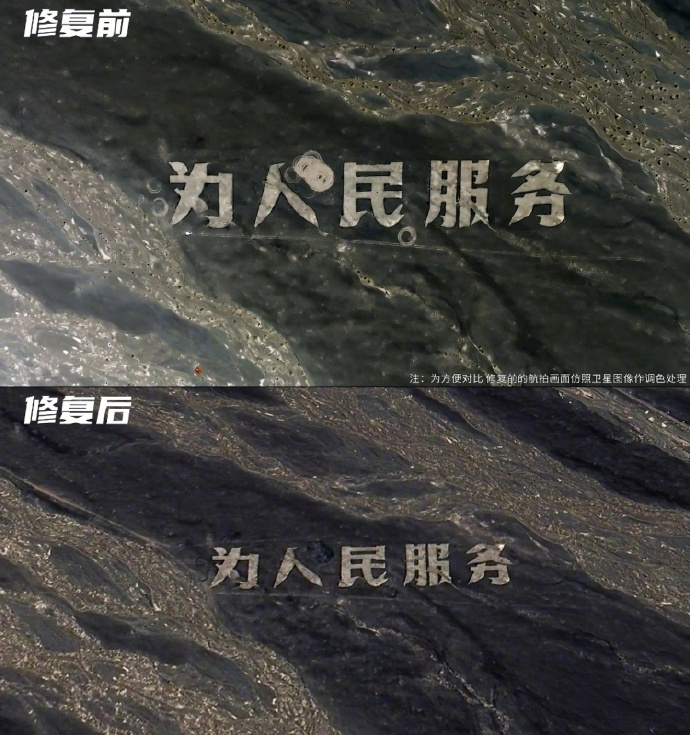 (新疆哈密戈壁灘“為人民服務(wù)”標(biāo)語遭破壞相關(guān)對(duì)比圖)