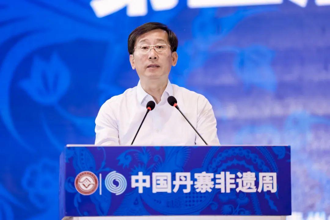7月21日晚,第三屆中國丹寨非遺周在貴州省黔東南州丹寨縣丹寨萬達(dá)小鎮(zhèn)開幕。全國人大教科文衛(wèi)委員會主任委員、文化和旅游部原黨組書記、部長雒樹剛出席。文化和旅游部副部長饒權(quán)講話。中國非物質(zhì)文化遺產(chǎn)保護協(xié)會會長王曉峰,貴州省人大常委會副主任、省總工會主席桑維亮,萬達(dá)集團總裁齊界致辭。貴州省人大常委會黨組成員于杰,貴州省委宣傳部副部長、省文化和旅游廳廳長孫含欣,州委書記、州長安九熊,州人大常委會主任湯越強,州政協(xié)主席潘玉鳳,州領(lǐng)導(dǎo)譚海、崔鵬、龍黔清、王建華,亞洲財富論壇執(zhí)行主席、秘書長韓劍鋒出席開幕式。中國非物質(zhì)文化遺產(chǎn)保護協(xié)會副會長兼秘書長張雅芳主持開幕式。