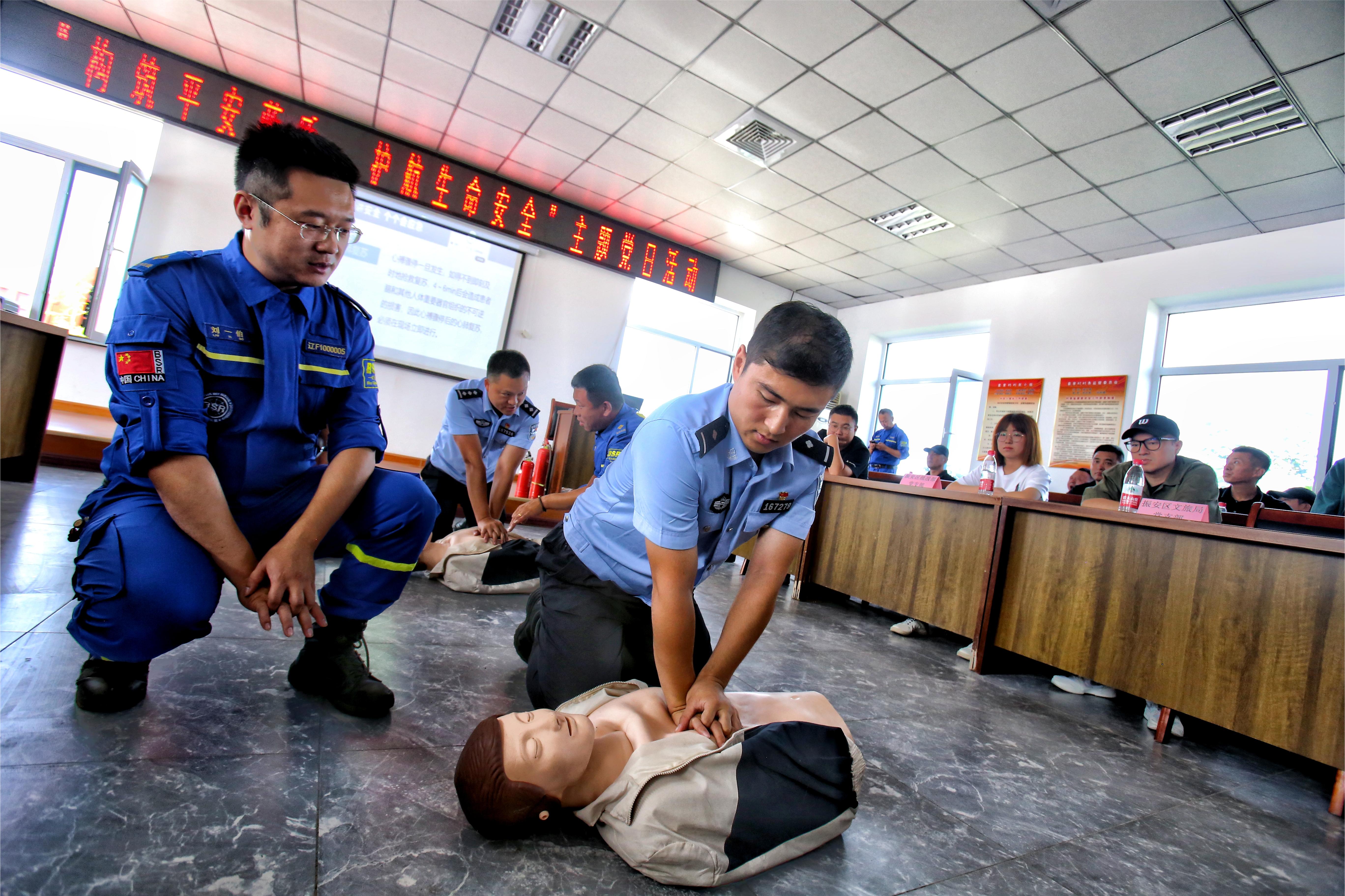 簽約儀式后,丹東藍(lán)天救援隊現(xiàn)場為120余名骨干黨員開展了應(yīng)急救護(hù)知識專題培訓(xùn),隊員們通過理論知識講解、現(xiàn)場演示、互動教學(xué)等方式,以生活中發(fā)生頻率較高的突發(fā)意外為例,生動形象地講解了腦梗、心梗、昏迷、休克、中暑、低血糖等急性癥狀發(fā)作時的急救措施,重點對腹部沖擊法心肺復(fù)蘇術(shù)、止血包扎、溺水、抽筋、氣道異物梗阻的搶救技巧,以及心臟按壓的基本原理和操作流程等內(nèi)容進(jìn)行講解,并通過互動式實操演練,現(xiàn)場指導(dǎo)要領(lǐng)、糾正方法,確保在場的民警和群眾真正掌握急救技能。