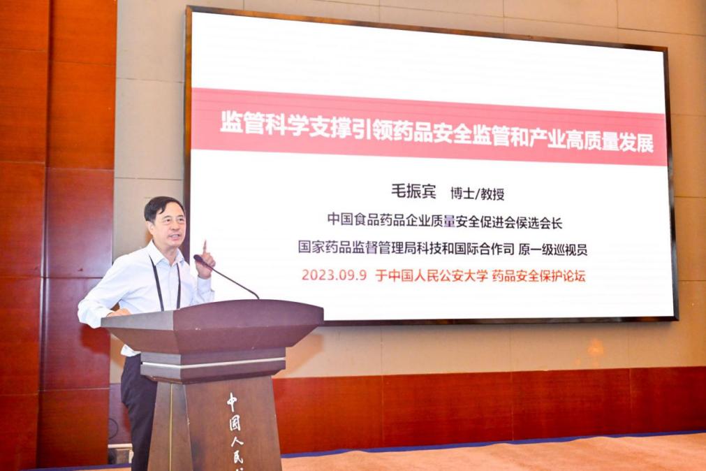 在主論壇“藥品安全的形勢與挑戰(zhàn)”的第一個環(huán)節(jié),國家藥監(jiān)局原一級巡視員毛振賓、山東省公安廳食藥環(huán)偵總隊原總隊長暨二級警務(wù)專員葛聞雷、中國人民大學(xué)法學(xué)院教授時延安、北京市第三中級人民法院副院長王海虹,分別從新時代新形勢呼喚監(jiān)管科學(xué)新理念、新征程新目標彰顯科學(xué)新價值、監(jiān)管科學(xué)引領(lǐng)醫(yī)藥產(chǎn)業(yè)高質(zhì)量發(fā)展等方面做主旨演講。