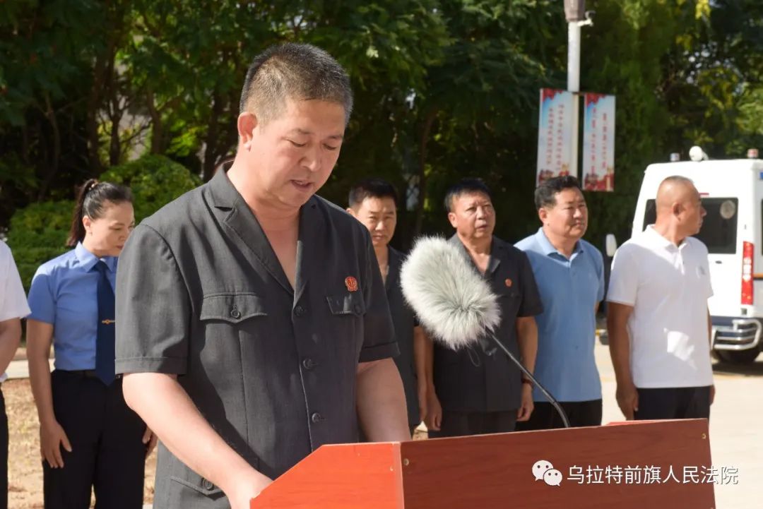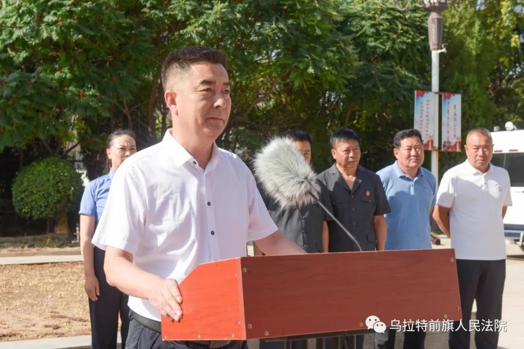 8月7日上午8:30,烏拉特前旗人民法院舉行了執(zhí)行專項(xiàng)行動啟動儀式。旗政協(xié)主席金山、旗委副書記政法委書記秦淮、旗人大常委會副主任高雷、旗政府副旗長公安局局長劉煜、旗檢察院檢察長楊弘年、旗人民法院院長張海平、旗司法局局長吉仁浩雅爾出席啟動儀式。旗人民法院領(lǐng)導(dǎo)班子成員、環(huán)節(jié)干部、執(zhí)行局、法警大隊(duì)全體干警參加了儀式。部分市旗人大代表、政協(xié)委員、紀(jì)委監(jiān)委、政法委、公證處工作人員、媒體記者受邀參加啟動儀式并全程參與執(zhí)行行動,見證執(zhí)行全過程。