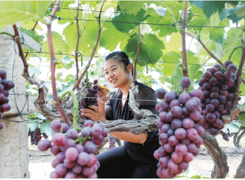 游客在成子湖社區(qū)果園里體驗(yàn)采摘的樂趣(資料圖)