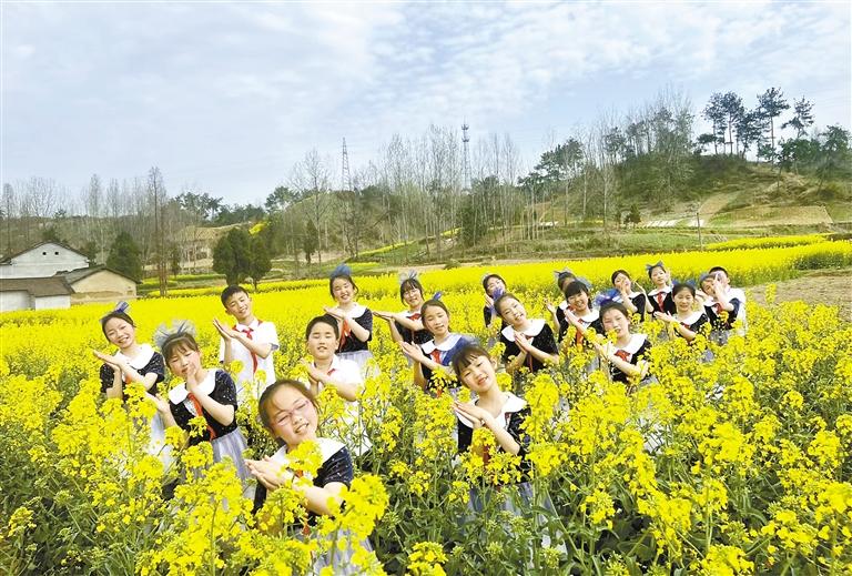 小白鷺合唱團(tuán)的孩子們?cè)趯W(xué)校附近的油菜花田合影(資料照片)