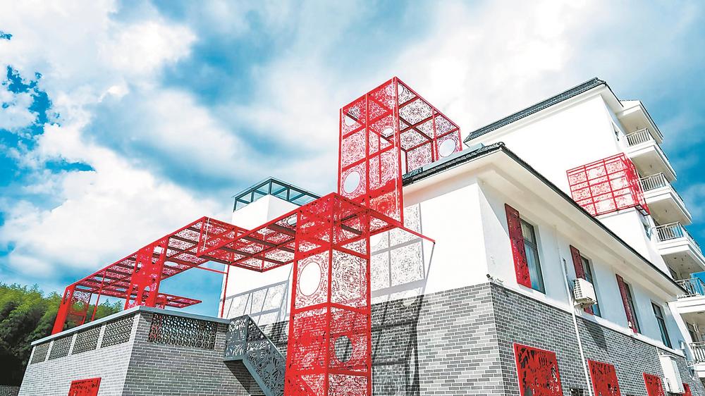 柘榮縣城郊鄉(xiāng)靴嶺尾村,一座被刀剪藝術(shù)氣息環(huán)抱著的村莊。村內(nèi)設(shè)有形形色色的剪紙傳習(xí)館、體驗館,剪紙元素融入庭院立面、田間地頭,漫山剪紅在白墻灰瓦的映射下顯得分外美麗。