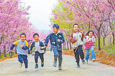 在北灣半島櫻花園,孩子們盡情游玩奔跑 通訊員 李秀珍 攝