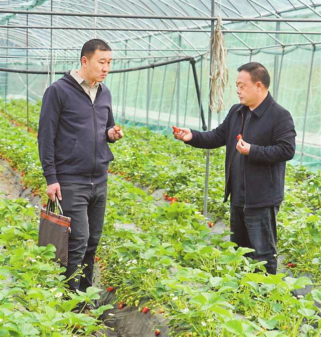 何書勤(左)在城口縣北屏鄉(xiāng)太平社區(qū)草莓種植基地走訪調(diào)研(受訪者供圖)