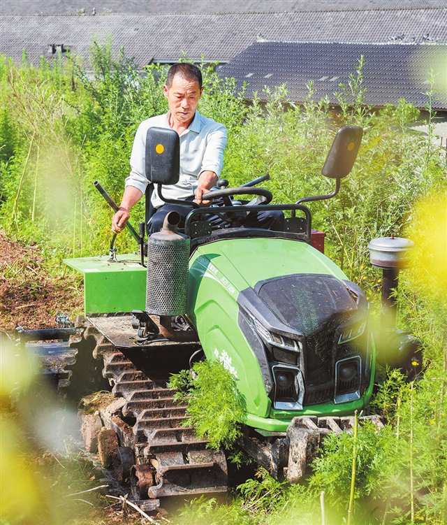 南川區(qū)河圖鎮(zhèn)中圖村村支書唐科忠操作旋耕機(jī)耕地 通訊員 陳珊 攝