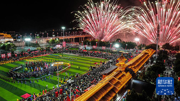 活動中,音樂煙花秀精彩上演(2024年2月3日攝,無人機(jī)照片)記者 劉續(xù) 攝
