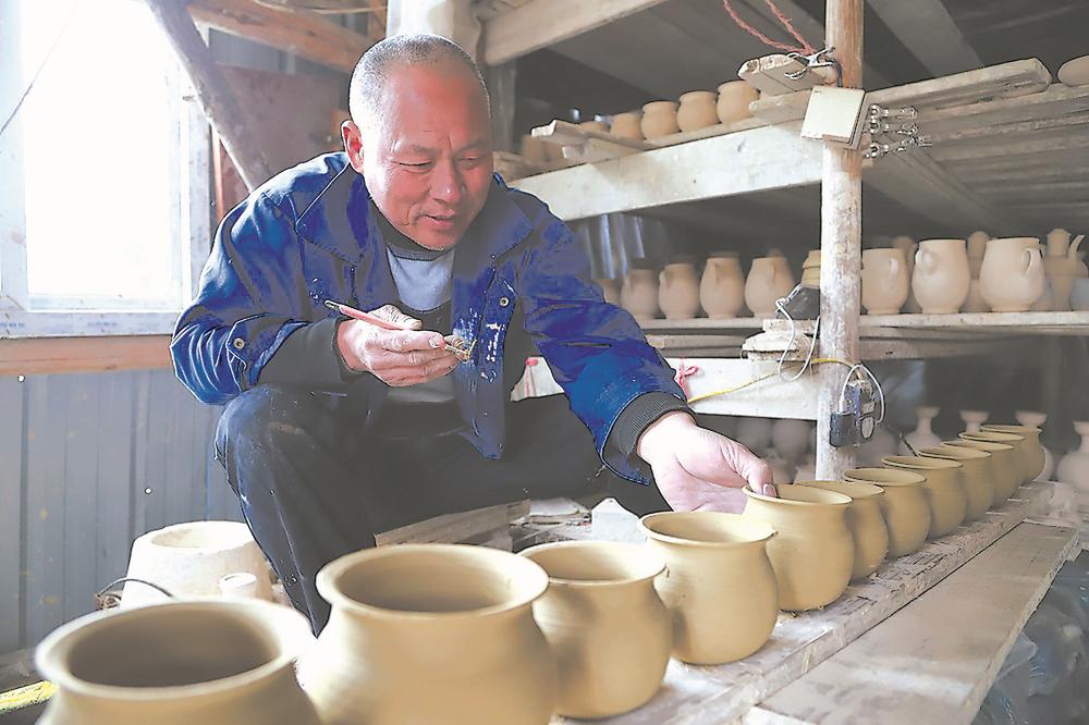 邵武市和平鎮(zhèn)楓林村村民邱慶華在自家的工作室制作青白瓷