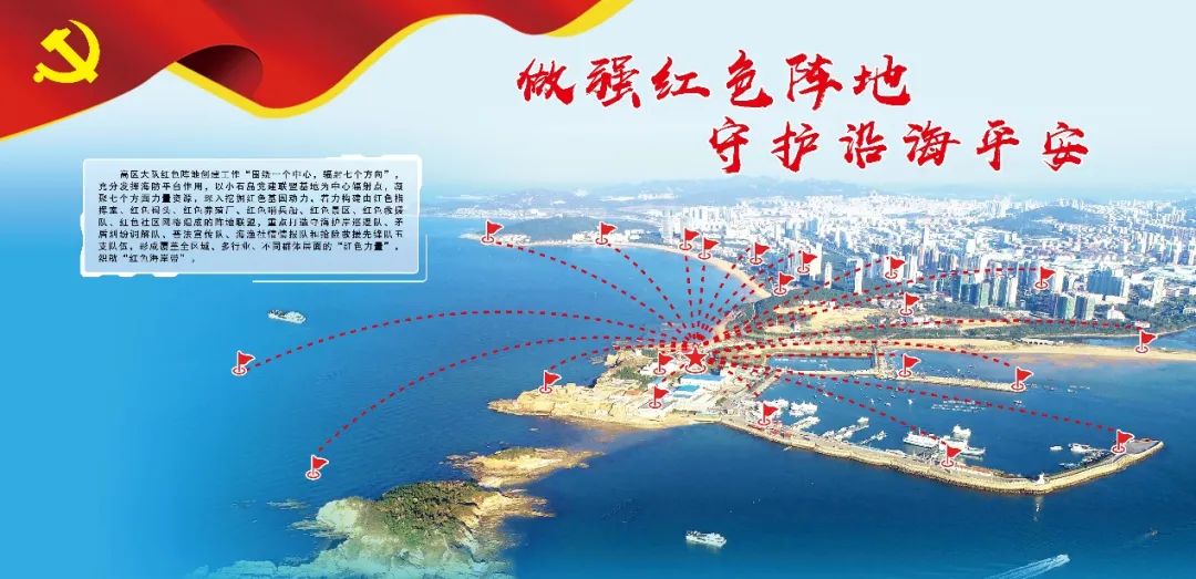按照上級統(tǒng)一部署,堅持黨政統(tǒng)領,聚力賦能融合,全面整合涉海職能部門、沿海社區(qū)、涉海行業(yè)組織和重點漁港碼頭的黨建力量,以小石島黨建聯(lián)盟中心為主陣地,分類建設紅色指揮室、紅色碼頭、紅色養(yǎng)殖場、紅色哨兵船隊、紅色景區(qū)、紅色救援隊和紅色社區(qū)網(wǎng)格,初步形成了“中心輻射、七方協(xié)同”的紅色元素矩陣,編織造就了一條井然有序的紅色海岸帶。