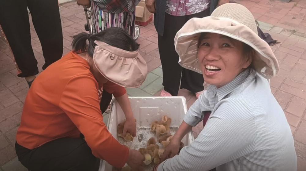 龍井市老頭溝鎮(zhèn)永勝村村民興高采烈地領(lǐng)取免費雞雛