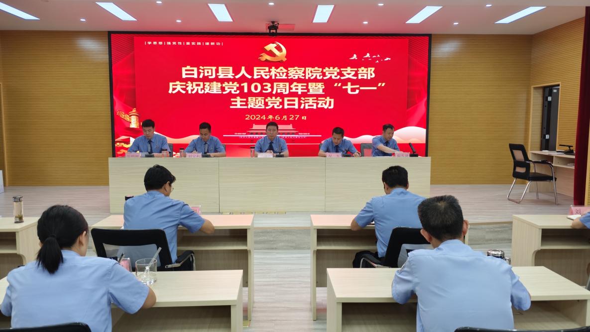 6月27日,陜西省安康市白河縣人民檢察院開(kāi)展慶祝建黨103周年暨“七一”主題黨日活動(dòng),活動(dòng)由該院黨組成員、政治部主任樂(lè)明剛主持,全體黨員干警參加。