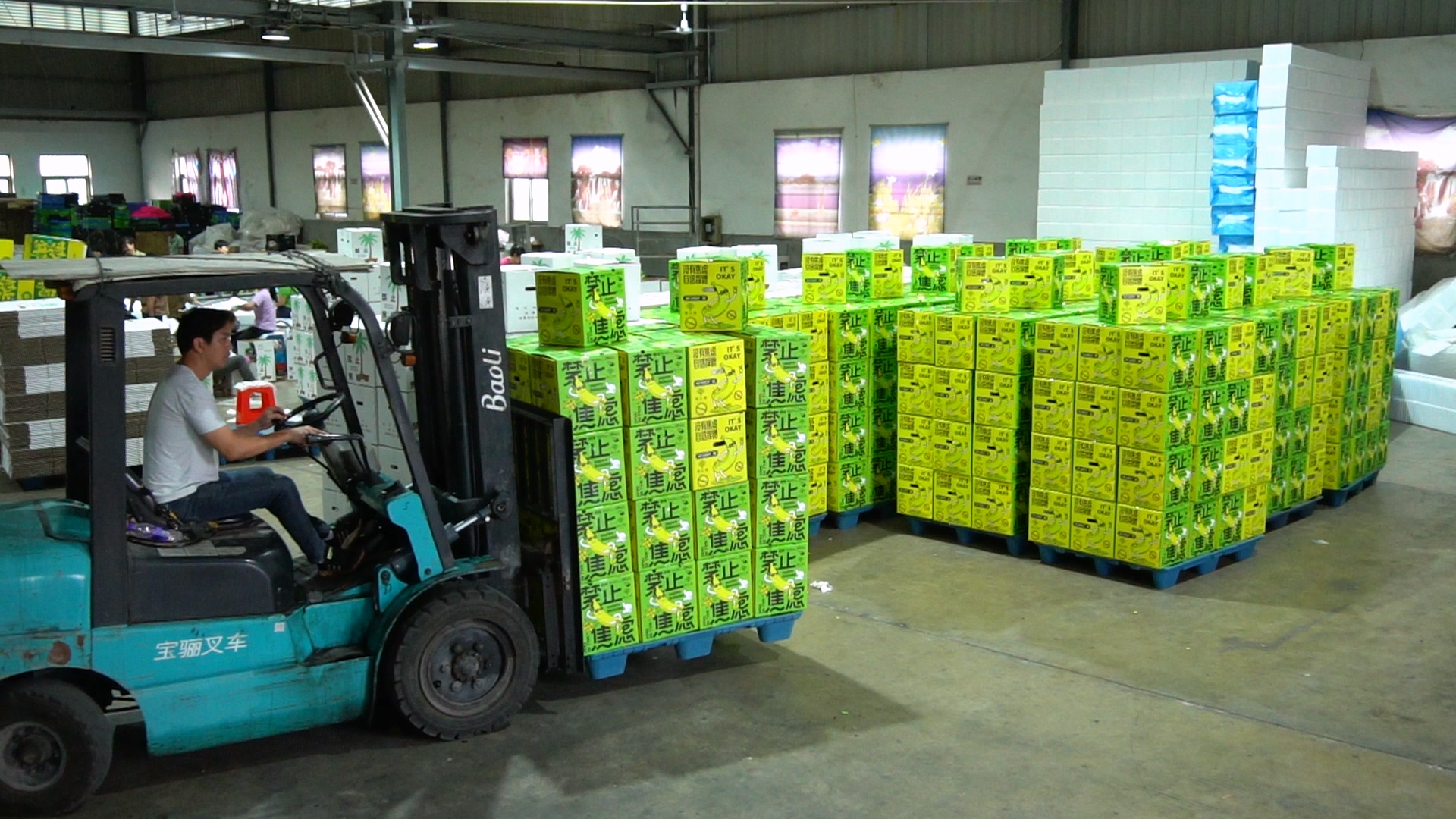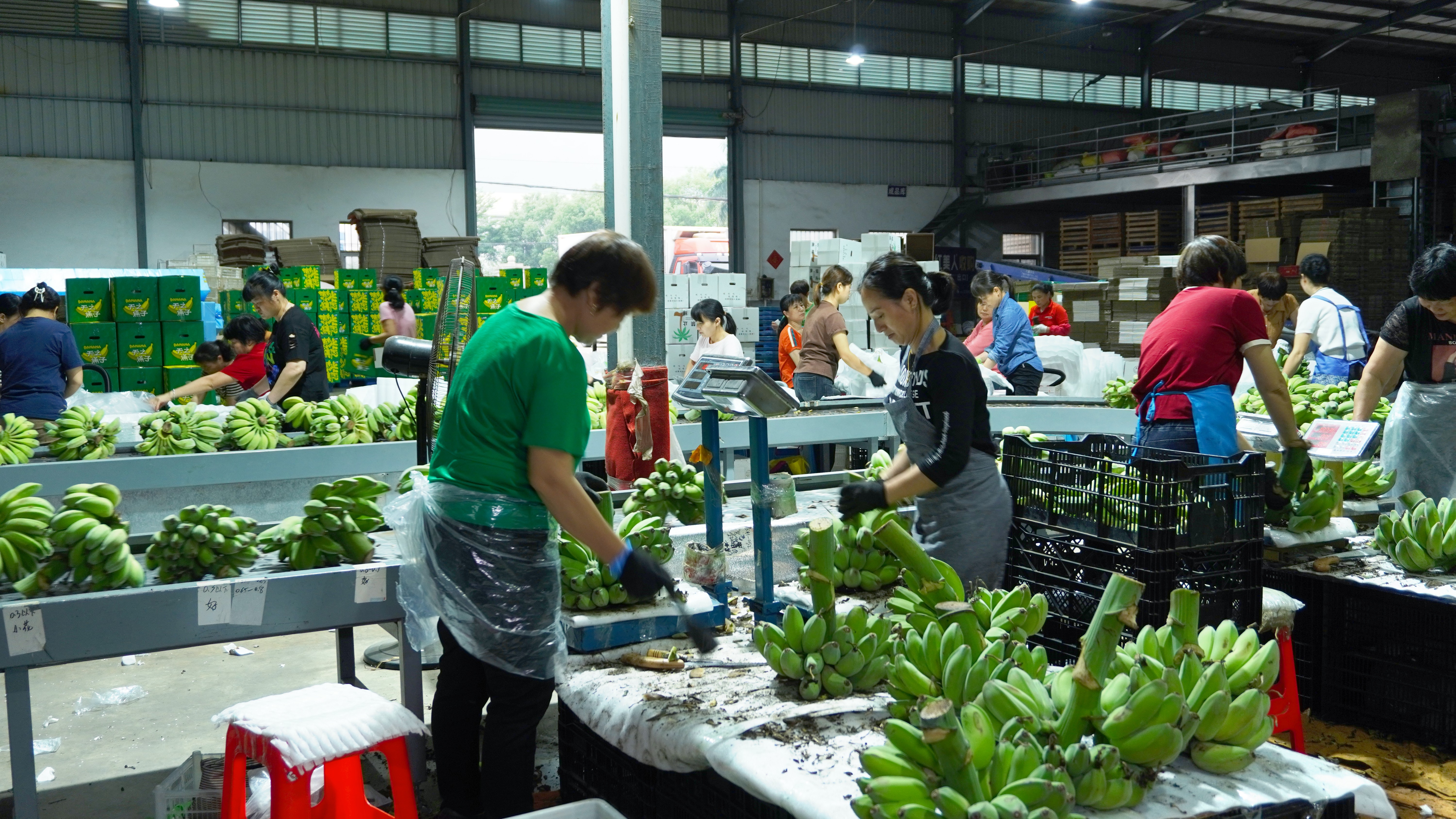 福建省平和縣坂仔鎮(zhèn)的電商發(fā)貨車間內(nèi),“禁止蕉綠”正在裝車(受訪者供圖)