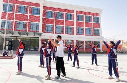 不僅少兒八段錦的練習(xí)頗有講究,看似簡單的“啦啦操”也大有門道。在瑪合瑪勒小學(xué)的啦啦操課上,體育老師趙金閣采用分解教學(xué)的形式向孩子們講授動作的發(fā)力順序和動作要領(lǐng),并讓學(xué)生們跟著音樂節(jié)拍完整練習(xí)?!案?jié)拍練習(xí)既能增加學(xué)生上課興趣,還能幫助學(xué)生更快掌握技術(shù)要領(lǐng),做到科學(xué)練習(xí)。”
