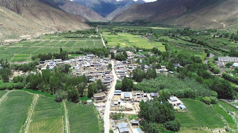 位于溫曲河谷的山南市乃東區(qū)結巴鄉(xiāng)格桑村1組俯瞰圖 通訊員 潘高 記者 汪純 攝