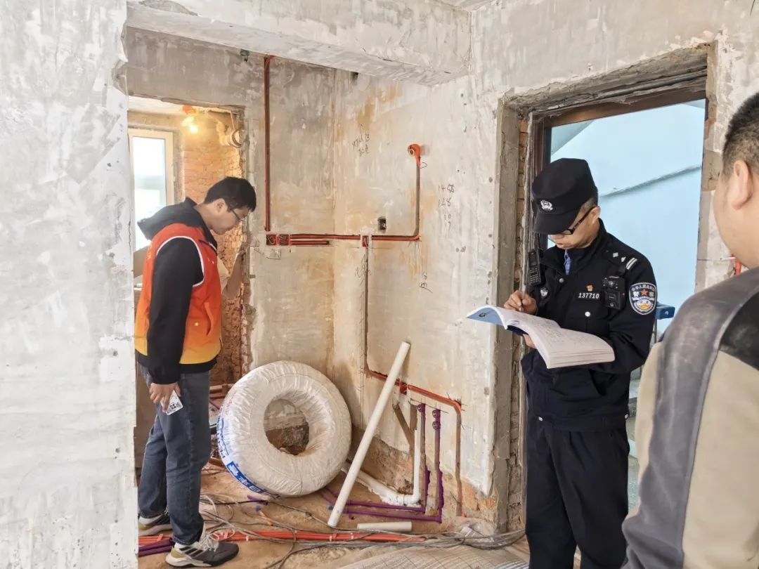 在去往陳先生家的路上,筆者小步快跑才跟得上丁超剛的腳步,筆者問(wèn):“你每天走這么多路,會(huì)很累嗎?”丁超剛說(shuō):“每天這樣都習(xí)慣了,我以前每天跑五公里,自從當(dāng)了社區(qū)民警,每天工作都能走兩萬(wàn)步,鍛煉與工作相結(jié)合,也挺好!”到達(dá)裝修現(xiàn)場(chǎng),丁超剛和網(wǎng)格員向裝修工人普及了噪音施工相關(guān)規(guī)定,叮囑他們?cè)谝?guī)定時(shí)段內(nèi)施工,自覺(jué)遵守相關(guān)法律法規(guī)要求。