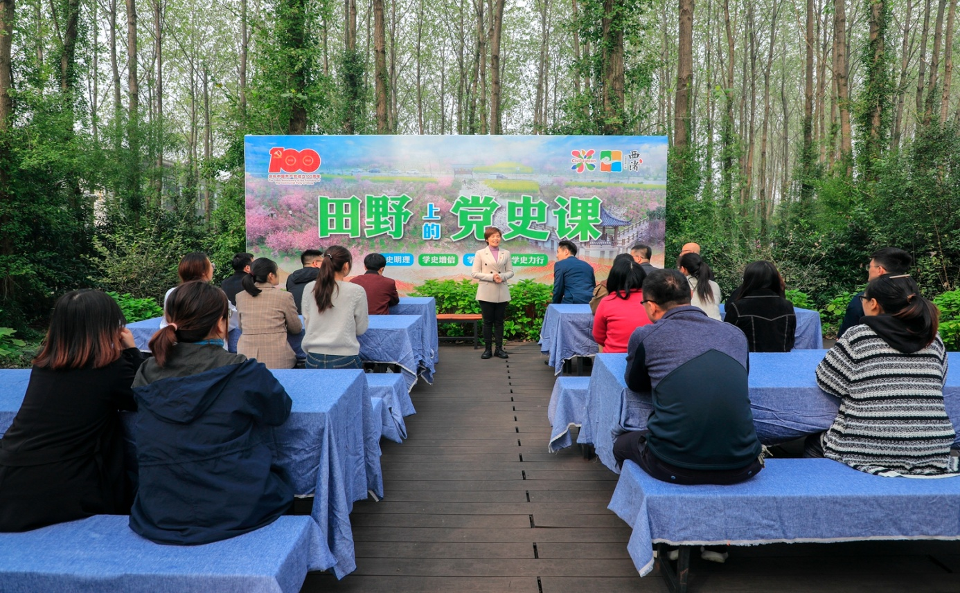 通過“移步換景”等方式,把“紅色知識”帶入“生動體驗”的實境課堂。利用“一堂”即道德講堂、“一館”即于伶紅色紀念館、“一田”即田野上的思政課、“一廊”即紅色文化長廊,不斷延展閱讀活動的外延內涵。在道德講堂,持續(xù)開展主題教育、紅色觀影、黨建聯盟等黨建活動。把于伶紀念館作為面向全國的愛國主義教育基地,每年承接幾十場宜興中、小學、未成年人的社會實踐活動,數百場全國各黨政機關、企事業(yè)單位黨建參觀。在田野上的思政課和紅色文化長廊,全國人大代表、白塔村村書記現場講述白塔村從“窮山溝”變?yōu)椤盎▓@村”的奮斗故事。